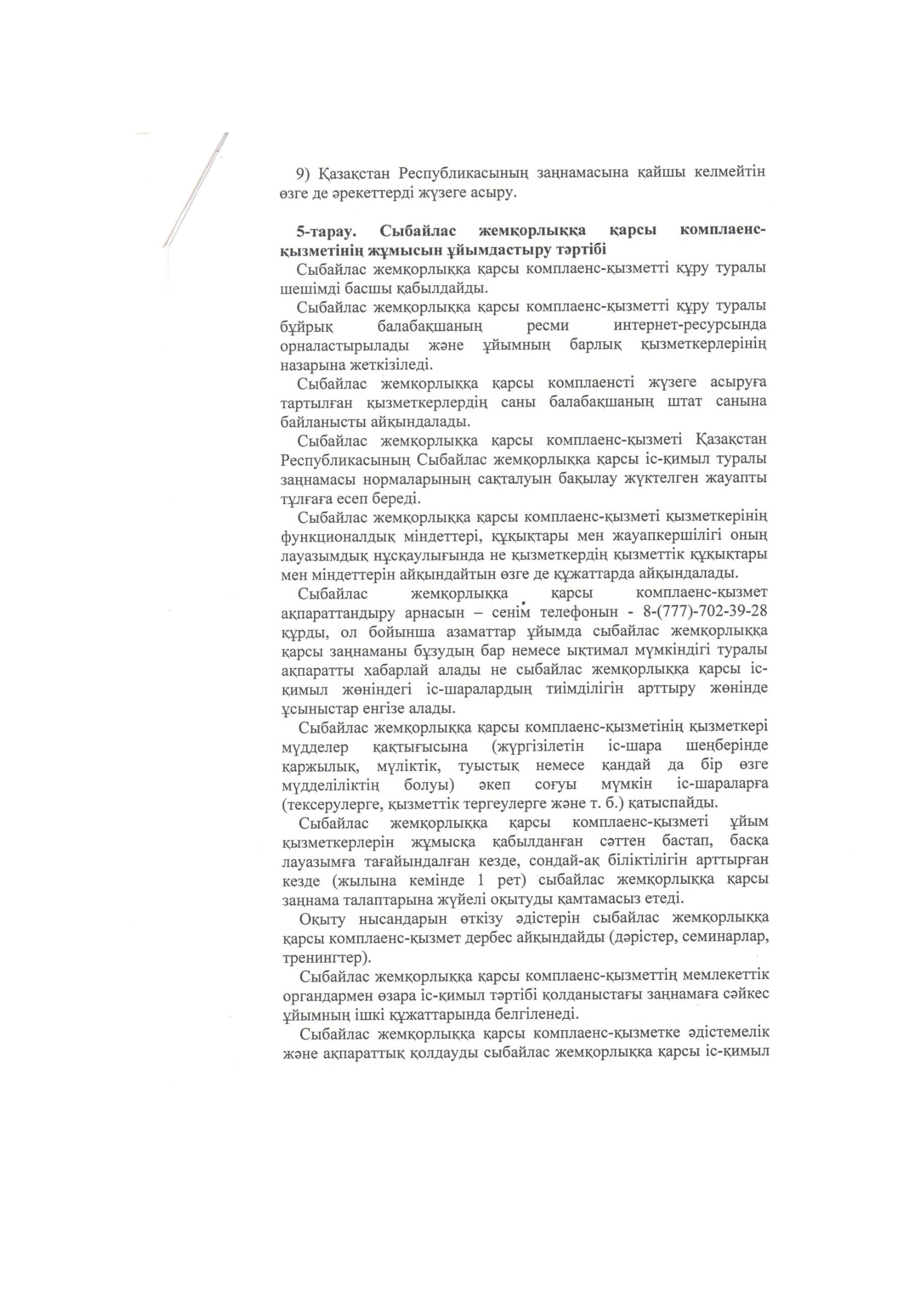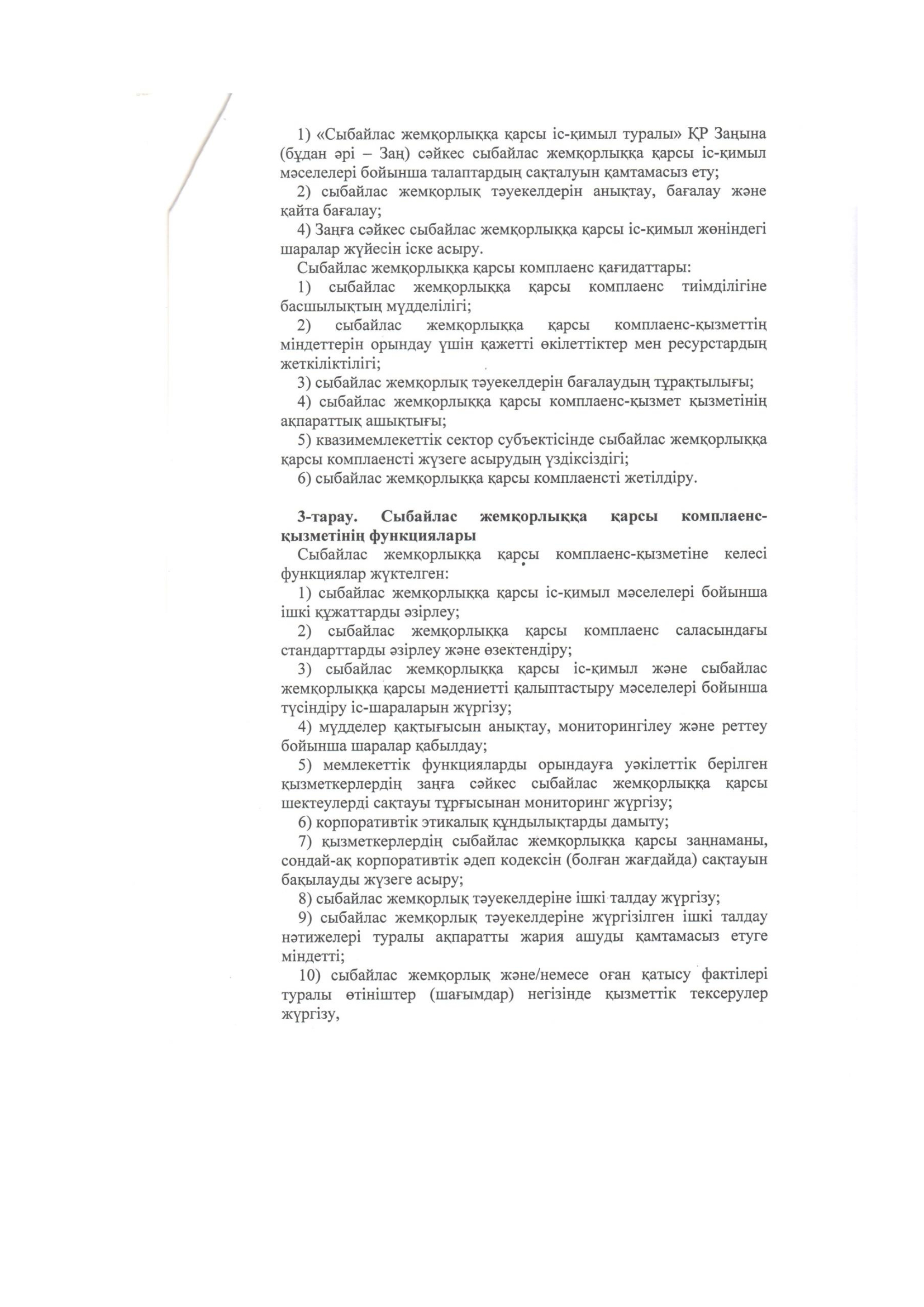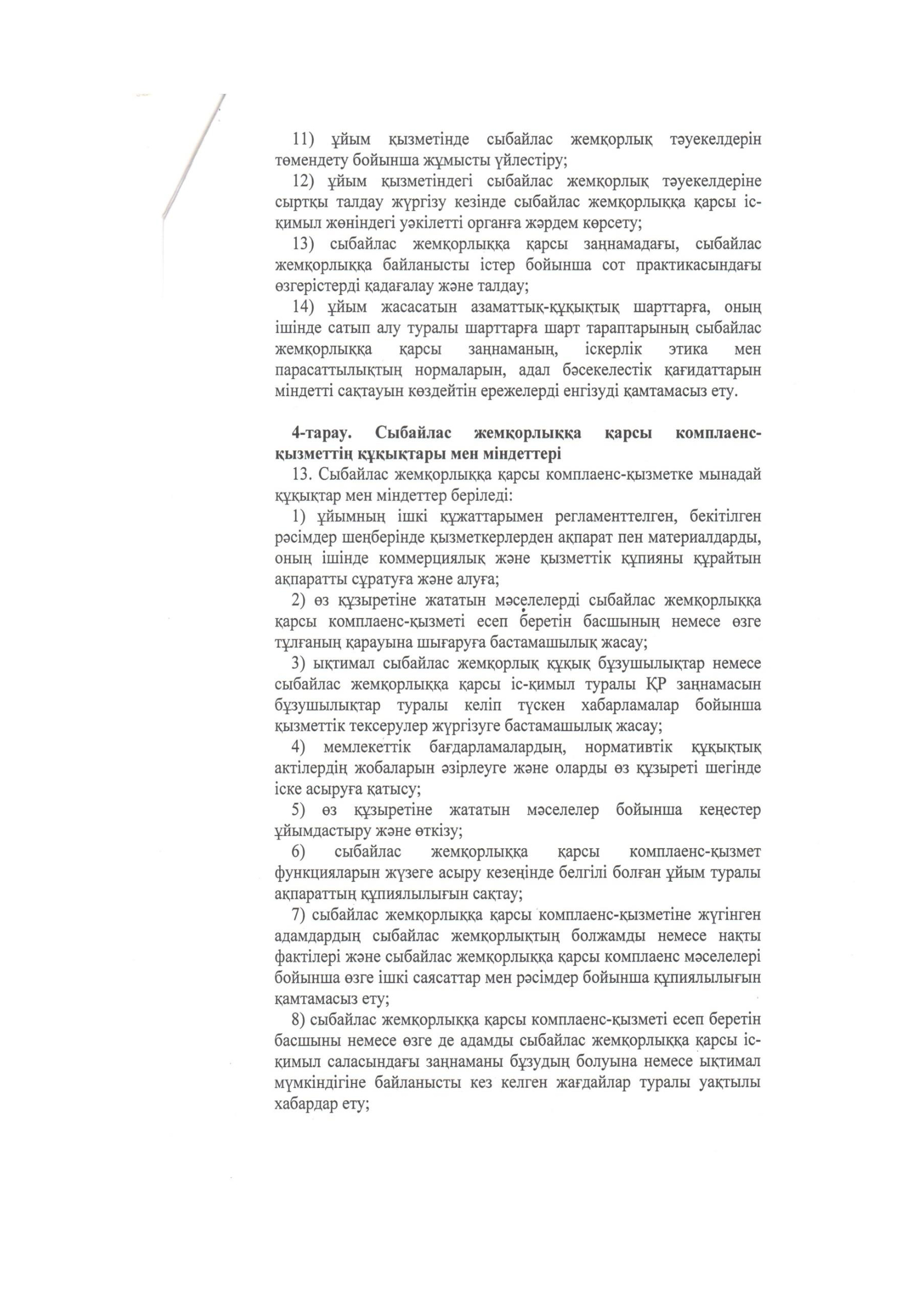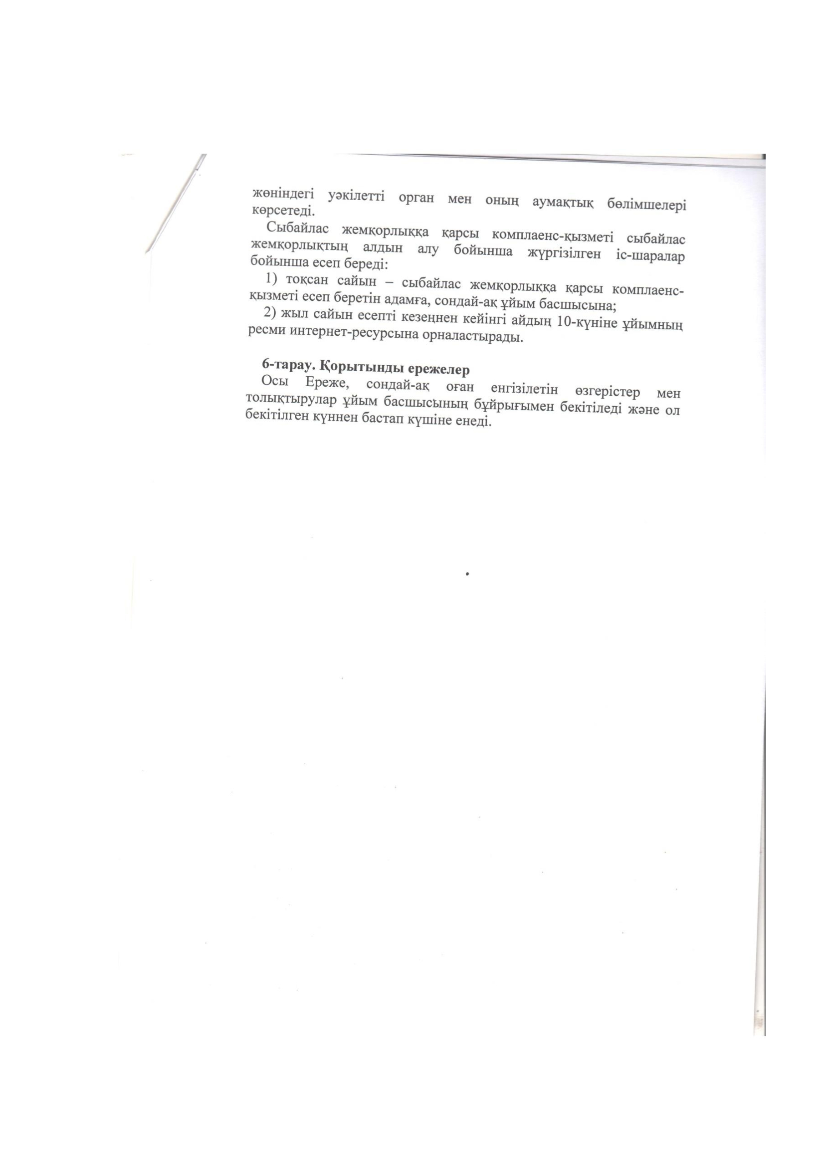 по исполнению антикоррупционной стратегии Республики Казахстан