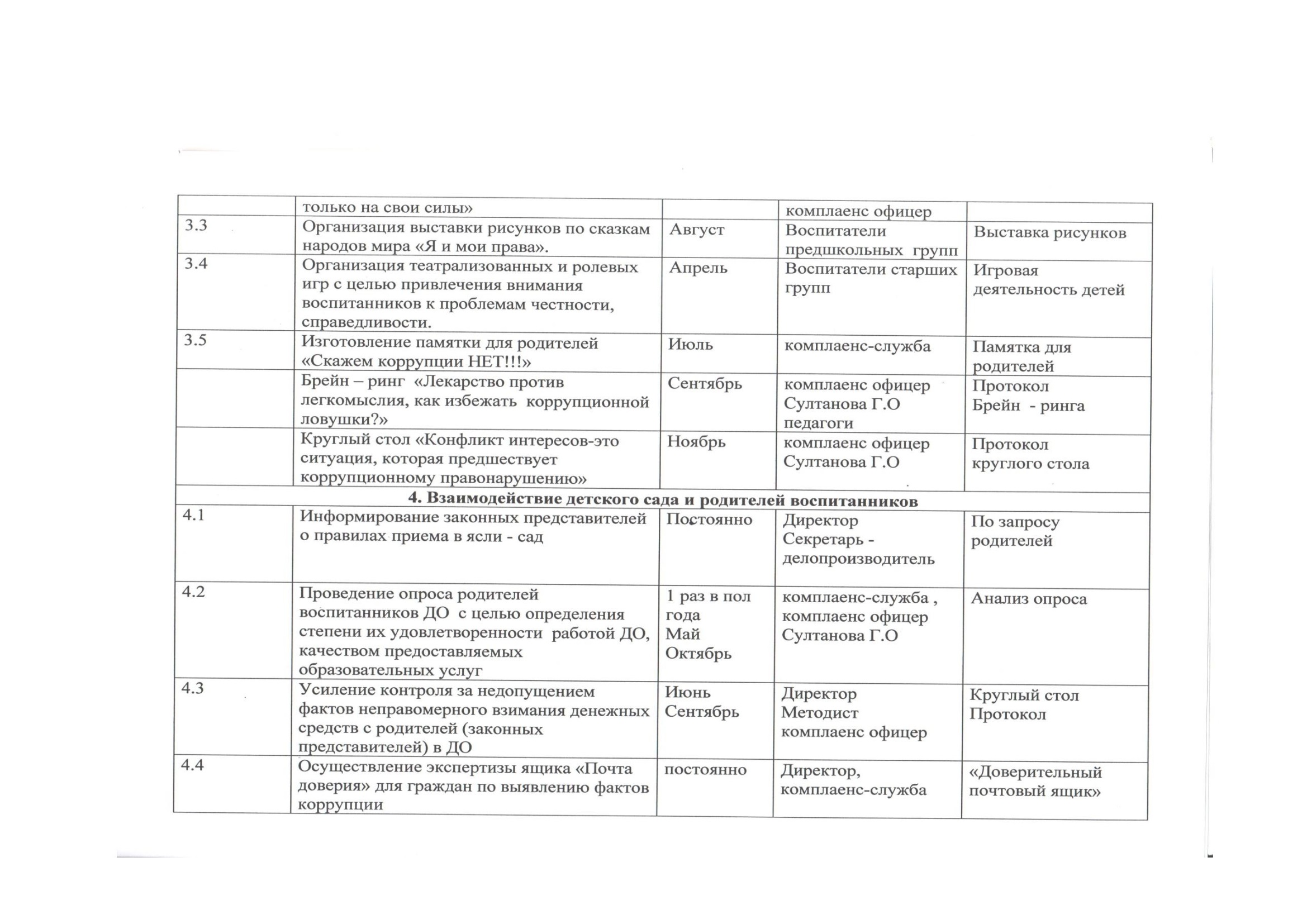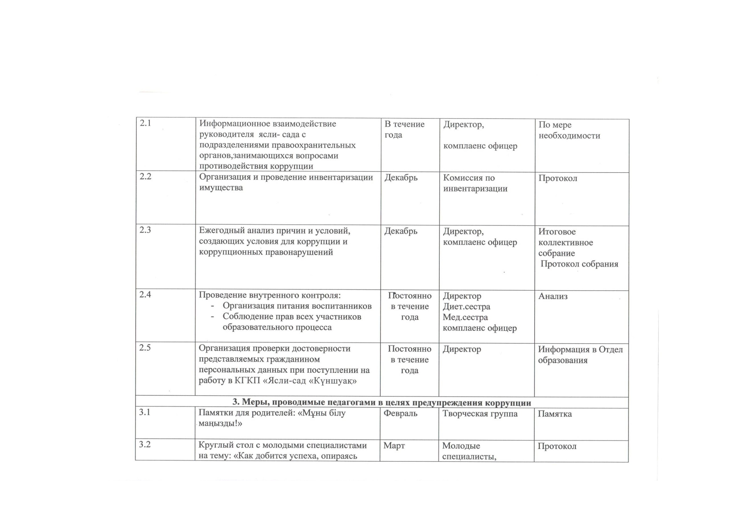 по исполнению антикоррупционной стратегии Республики Казахстан в КГКП «Ясли саду «Күншуақ» города Сатпаев